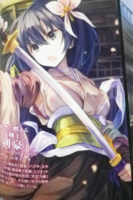 《真実》は《死闘》の果てに。 ラノベ・漫画・雑誌・ムック 2015年10月13日 『白銀のソードブレイカーIV -剣の絆、血の絆-』著者:松山 剛イラスト:ファルまろ白銀の破壊者エリザは、ついに最凶の剣聖デュランダルとの戦いに臨む。他の剣聖とは一線を画した存在感を放つ、デュランダルの目的とは。『聖剣』と『剣聖』そして『魔剣』と『剣魔』。全ての答えが今明らかに。……終わってもうた。なんというか、良かったとしか言い表せない。最終ページにある挿絵のエリザの笑顔がすべてを物語っているというか。いっそ画像も貼りたいくらいだが、これはちゃんと本文を読んだ上で見てほしいので貼らない。なので、替わりにこの素敵な挿絵を。実に豊満である。あとがきの“公式設定”いわく、エリザはレギュラーキャラでは1番という事になる。これが何の設定なのかは推して知るべし。しかし、この作品は本当に面白い。硬派な物語を書く作家は、いわゆる“萌え”が不得手だったりするが、この著者は前面にこそ押し出さないものの、女の子を可愛く描く術を知っている。実際、ヒロインのエリザが超可愛い。もう本当にツボ。主人公(作品の主な視点を担うという意味で)がエリザを愛おしく感じていく段階と、読者のそれがシンクロしている感が半端ない。結末の段階では、完全に主人公の心情と一致していた。エリザ――本当に愛おしい。他にもロリババア、剣術小町、控えめ淑女、妖艶な子持ち、狂人などなど、様々な美少女達が登場。もちろん、ストーリー面での読みごたえもバッチリ。この作品は本当にオススメなので、是非とも読んで欲しい。