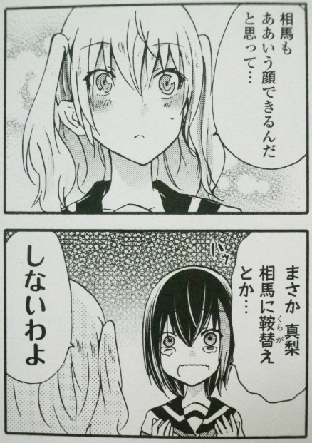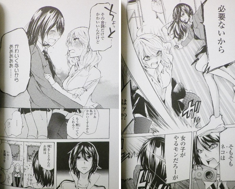 行くぜ! たぎるぜ! 猫カフェだぜ!! ラノベ・漫画・雑誌・ムック 2016年09月18日 『犬神さんと猫山さん』第5巻著者:くずしろ最初から好感度MAXの二人、ついに発展リーチ突入!!?様々な百合カップリングが楽しめる『犬猫』、第5巻。今回は相馬と猪里(いのり)の“馬猪”カップルがメインだったように思う。見よ、このビッチ具合。ただ、彼女は本当にクズという訳ではなく、他人の気持ちが判らないという欠落を抱えているので、そこが難しいところ。とはいえ、変に重い訳でもなく、基本的には相馬に振り回される周囲(主に猪里)の反応が楽しい。イチオシは真梨と乙姫(おとめ)の“虎龍”。小柄だが唯我独尊の真梨と、男前だが乙女な乙姫(ちょっとドヤ顔)の関係性が美味しくて仕方ない。今回気になったのは牛若さん。天然お姉さんキャラだと思っていたが、新たな一面が。 杜松(ねず)ちゃんは知らないようだが、これがどう展開するかも気になる。余談だが、今回、お気に入りのひばりちゃんの出番が1コマしかなかった……。これだけキャラが増えて、新キャラはフィーチャーしなきゃいけないので、仕方ないっちゃないのだが。ともあれ、百合好きには激しくオススメ。特に、ちょっと“毒”がある作品が好きな方に推したい。もちろん、そうでない方にも。