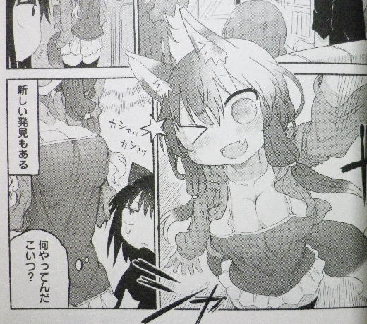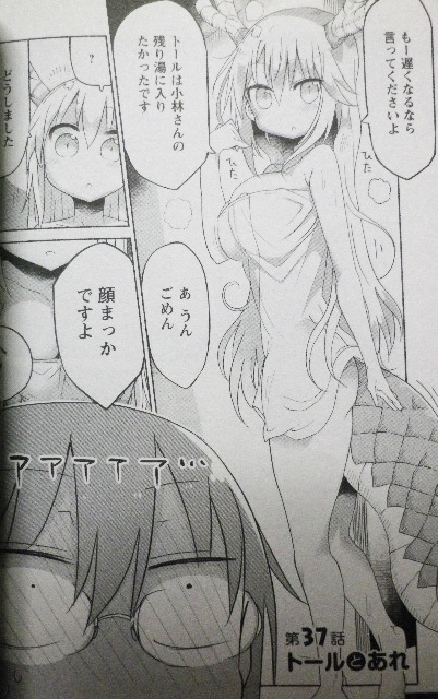 お疲れOL×ちょろ可愛ドラゴンの人外系日常コメディ! ラノベ・漫画・雑誌・ムック 2016年07月13日 『小林さんちのメイドラゴン』第4巻著者:クール教信者大好きな小林さんとの日常を満喫するトールのもとに、凶悪な“混沌勢”のドラゴン娘・イルルがやってきた!!すべてを破壊しようとするイルルから、小林さんを守ろうとするトール。人間=敵として育てられたイルルはそんな2人の絆が信じられなくて……!?大人気人外系コメディ!!アニメ化も決定した『メイドラゴン』の最新刊、読了。本作は人間の主人公・小林と、人外であるドラゴン達が出会い、人間社会で共に暮らす物語。人外ものの魅力は、“人でない存在”を通して、“人間とは何か”を描ける事だと思う。そういう意味で、本作は素晴らしい人外ものとなっている。それでいて、そういうテーマに興味がなくても、可愛らしいキャラクターを愛でるだけでも楽しめると思う。今回のメインとも言えるイルルは、人間形態ではロリ巨乳という、実にクール教信者らしいキャラ。個人的には、ビジュアル・キャラ的にも好きなエルマの当番回もお気に入り。けどやっぱり、トールが1番可愛い。今回はこんなサービスカットも!人外でスタイル抜群で金髪ツインテのメイドさん――ハラショー。いやはや、アニメ化も非常に楽しみ。