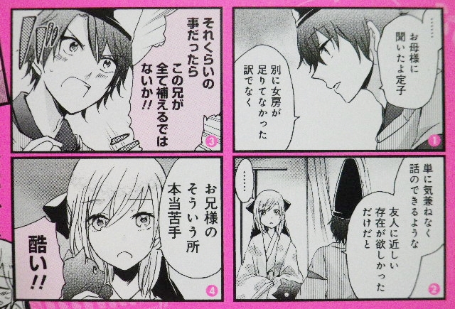 藤原定子をめぐって正妻戦争ついに勃発!? ラノベ・漫画・雑誌・ムック 2016年10月09日 『姫のためなら死ねる』第6巻著者:くずしろ『枕草子』でもお馴染み、定子様のステキなお兄様藤原伊周。……だけど妹泣かせのちょっと面倒くさい御方のようで……。平安時代を舞台に、清少納言や紫式部などをモチーフとした、かなりざっくばらんな漫画。今回はヒロイン・定子のシスコン兄貴こと、伊周が登場。これをあしらう定子のつれない感じが可愛い。でも、こんな可愛い妹いたら、構っちゃうよね。清少納言×定子のカップリングももちろん好きなのだが、個人的には清少納言×紫式部のカップリングが1番好きだったり。かまってちゃんのめんどくさい少納言に対し、文句を言いつつ構っちゃう紫のツンデレという構図――実にキマシ。今回ちょっとグッときたのは彰子の照れ顔。主上と彰子の存在も微笑ましいというか、新たな一面を垣間見たというか……ぐへへ。本編とは一切関係ないが、カラーページのアイドル姿もグッときた。ちなみに、左の紫式部が24歳、右の清少納言が27歳……アリ!こちらは正統派というか、むしろロリ。左の彰子が12歳、センターの定子が13歳、右の主上は年齢不詳だが明らかにロリ。もっと言うと右の主上は性別不詳だが、男のはずなので男の娘!言葉遣いやキャラ付けは現代風にアレンジされているが、基本的には平安時代。いやはや、宮中というのはいとおかし。オススメ。漫画連載をしている『まんがライフWIN』のサイトはこちら