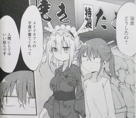 最高のメイド…! 私を差し置いてなんという誇大広告か! ラノベ・漫画・雑誌・ムック 2017年01月30日 『小林さんちのメイドラゴン』第5巻著者:クール教信者イルルとの闘いも決着し、再び平和が戻った小林家。メイドなドラゴン娘・トールは街のパトロールにメイド喫茶のバイトにと破天荒に大活躍!そんな中、普通の日常を送ることに抵抗を感じるイルル。一方、翔太はルコアとの関係に悩みを抱えていて……?大人気人外系コメディ!!可愛らしくも独特の絵柄でありながら、“人と人でないもの”というテーマを扱った作品、早くも5冊目。いやはや――トール、可愛い。美少女はヤバい表情すら可愛い。そして、普段と違うミニスカのフレンチメイド姿も!個人的には断然、ロングスカートのビクトリアンメイド派なのだが、普段と違うというのが大事。しかも――なんか雰囲気もエロい!それだけじゃない、浴衣もある!こだわりなのか、ヘッドドレスは外さない――俺得!すっかりおとなしくなったイルルにも、こんなラッキースケベが!なんというロリ巨乳……けしからん!ただ、出番で言うと今回は少ないけどね。アニメも絶賛放送中。第3話までの時点では好感触!逆にアニメは観てるけど原作未読な方は、こちらも是非!