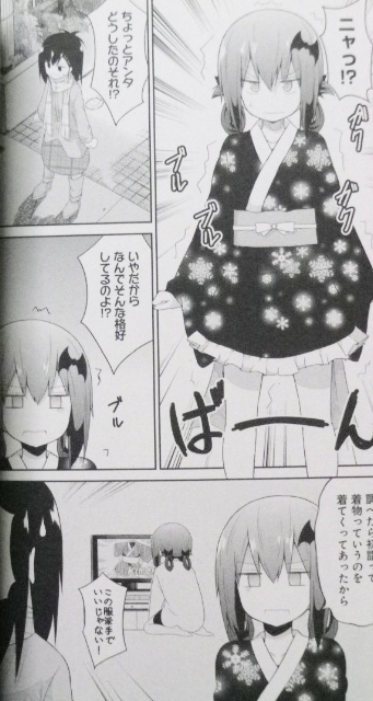 人間と妖怪の境界って? ラノベ・漫画・雑誌・ムック 2017年06月25日 『もののけ◇しぇありんぐ』第3巻著者:クール教信者女子高生と妖怪娘のギュウギュウ共同生活、まさかの解散危機!?新居も完成し、順風満帆なヤタ達のところへ妖怪世界の偉い人・般若の智慧姫がシェアハウスを解散しろ、と乗り込んで来た!!そこには、人間と妖怪の根深い問題が絡んでいて……。笑いとエロと涙、+ちょいシリアスでお届けする第3巻!!人間のJKと妖怪がルームシェアする、異種間交流ストーリー。まずは新キャラ・ぬりかべ――座敷童っぽいロリっ娘だ!!そして、今回はもう1人新キャラが(他にも新キャラが続々登場するのだが、恐らくゲストか準レギュ)。和服の似合う美少女妖怪――智慧姫(ちえひめ)だ!見た目通りの一癖あるキャラなのだが、それだけに結末にグッとくる……!この著者は本当に“こういうの”が上手い――それが悔しくもあり羨ましい。余談だが、和服なので判りにくいけど……この娘ももちろん巨乳だ!