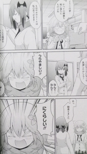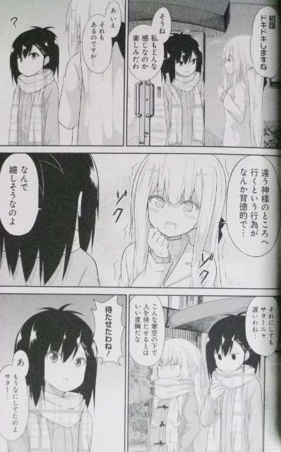 世界は悪魔(わたし)のためにある!/天界へ里帰り。ゲーム機なしじゃ退屈で死ぬ。 ラノベ・漫画・雑誌・ムック 2017年02月06日 『ガヴリールドロップアウト』第3~4巻著者:うかみ後輩天使からの尊敬を一身に浴びるエリート天使はどこへやら、人間界で無精を極めるガヴリール。そんな駄天使をライバル認定した悪魔・サターニャは、自身がナンバーワンだと証明するため勝負を挑み続けるのだった!(第3巻)日本になじみ過ぎてゲームだけしてるのが目標になった天使ガヴリールが里帰りへ。人間界の娯楽物は天界に持ち込み禁止だが、そんなルールを乗り越えるための努力なら惜しまないのがガヴ。駄天使コメディ、最新4巻!(第4巻)アニメ版も非常に良い感じで大満足な本作、発売されていたのを知らず、原作最新刊を第3巻と同時に購入。いやはや、非常に面白い。クリスマスにはしゃいだり、悪魔らしくない事に悩んだり、駄目な友人の世話を焼いたりするヴィネット、悪魔なのにマジ天使。流されやすくて単純で、残念で、お馬鹿だけど愛され系な悪魔・サタニキア。ミニスカ浴衣が超可愛い。面白いのが最優先な天使・ラフィエル。そして主人公、“駄”天使・ガブリエルガブやラフィーの後輩天使、タプリスも登場。こういう振り回されるタイプの純真キャラって可愛いよね。第4巻では天界に里帰りするエピソードも。第4巻のおまけでは、タプと同じく巻き込まれ系真面目キャラの委員長の描き下ろしも。こういう地味カワ系、大好き。アニメは良い意味で“そのまんま”映像化されているので、アニメでハマったら是非、原作も読んでいただきたい。ちなみに、あたしの押しキャラはヴィーネとサターニャだ!