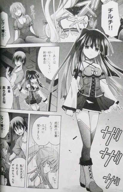 最凶悪魔ッ娘現る!! ラノベ・漫画・雑誌・ムック 2017年03月07日 『神殺姫ヂルチ』第4巻著者:的良 みらん捕われた父・一馬を救うべく“ゲーティア”に潜入した春臣たちは、“ゲーティア”所属の“枝”、レラジエの猛攻により絶体絶命の危機に陥るも、“ソロモン王の指輪”の新たな力で“枝”たちを退ける。一方で、一馬の救出に成功した室姫は、“ゲーティア”を破壊すべく一馬とともに所長室に向かうが、そこには衝撃の光景が……!“ゲーティア”潜入編、クライマックス!!今回の見所は、やはり新キャラ・ヘレネッツァ!いわゆる“メチャクチャ強いけど明確に敵ではないジョーカー的存在”――非常に美味しい。しかしヘレネッツァ、正確には新キャラではない。前作『おまもりひまり』の神宮寺くえす(初登場は成年向け漫画『PALLADIUM GARDEN』)と同じく、自著エロ漫画(『Anjelical Pendulum』全2巻)からのスターシステムなのだ。※画像は『Anjelical Pendulum』より他にも様々な美女・美少女がわんさか登場。お色気要因の夜鍵は今回もエロい目に。それだけじゃなく、重大な秘密も明らかになる。最後はメインヒロインのヂルチ。相変わらず、けしからんロリ巨乳である。新たな衣装のお披露目や、彼女の変化にも注目。やはり、ヂルチは春臣の妹なのか!?だったら俺得!今回も非常に良かった。次回予告の煽りを見ると、もう終わりなのかと不安になるが、とりあえず発売予定の秋を待ちたい。あと、作品と直接関係はないが、著者が結婚したらしい。一般誌デビューから10年経つと、結婚できるくらいになれるんだな――そんな事を思った。