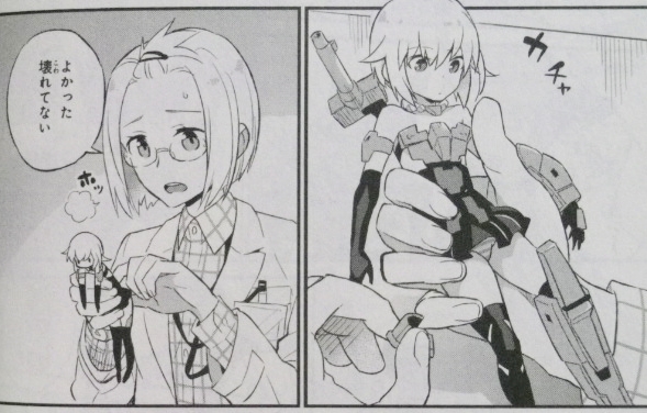 『FAガール』たちが研究室で成長していく物語を描く公式コミカライズ! ラノベ・漫画・雑誌・ムック 2017年05月04日 『フレームアームズ・ガール ラボ・デイズ』第1巻漫画:常石 ツネオ原作:コトブキヤ監修協力:赤尾 でこファクトリーアドバンス社の研究室で起動した轟雷。成長型人工自我を持った彼女は、研究者や他のフレームアームズ・ガールとの交流を通じて成長する。コトブキヤの大ヒットプラモデルシリーズ初のコミカライズ始動!アニメも好評放送中の『フレームアームズ・ガール』、その前日譚――読了。このコミカライズ、すごく良い……。轟雷ちゃん、超可愛い。アニメ版とは別のプロトタイプ的な個体なのだが、より表情が乏しいにも関わらず、超可愛い!嗚呼!たまらん!なんで無表情なのに、こんなにキュンとしてしまうのか……!?何気ない仕草や表情がいちいち可愛くて、個人的にツボを刺激されまくり。もちろん充電プラグを挿すシーンもある。うへへ……。なお、スティ子もアニメ版と同じくツンデレの振り回され体質で可愛い。ちなみに、第1巻では出番がちょっとだが、バーゼの担当である佐藤さんの寡黙っぷりもたまらん。次巻での出番に期待。いやはや、良い……。アニメ版のメインFAガール3人が好きな方には激しくオススメ。第2巻、今から楽しみ。紹介ページはこちら