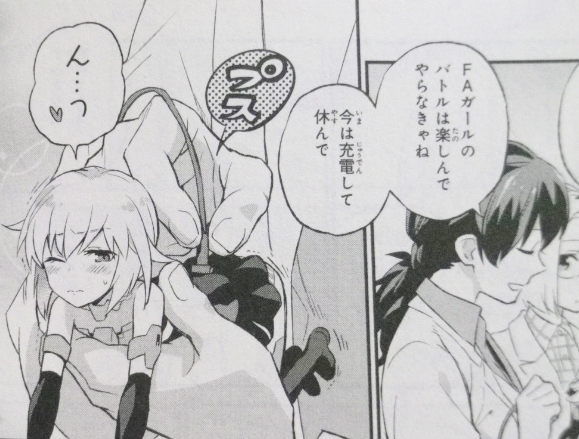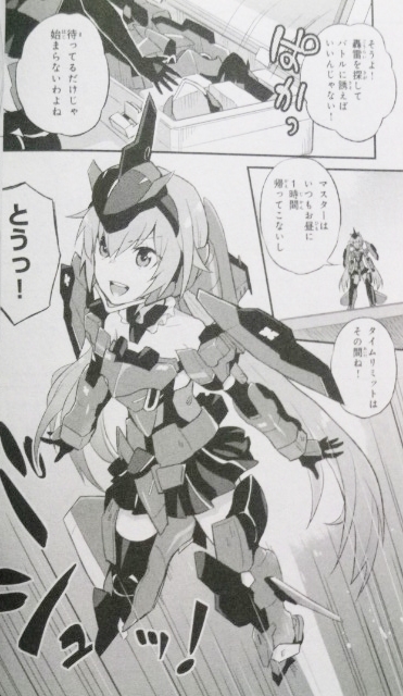 “可愛い”はいいこと? 難しいこと? 勝ち取ること!? ラノベ・漫画・雑誌・ムック 2017年05月05日 『フレームアームズ・ガール 可愛いってどういうこと?』著:手島 史詞カバーイラスト:島田 フミカネ口絵・本文イラスト:川村 幸祐原作:コトブキヤ監修協力:赤尾でこ小さな人型自律メカ『フレームアームズ・ガール』。そのひとり轟雷はマスターの少女・あおが言う「可愛い」が理解できず悩んでいた。そんなある日、あおの友人・武希子が様々な武器や装甲を持って遊びに来てくれた。だが轟雷が一番気になったのはあおが自作したという"リボン"。それはただの飾りなのに轟雷の胸を温かくするのだ。この気持ちを、あおにお返ししたい!――それが思わぬ冒険の始まりだった。大人気アニメの日常を繋ぐノベライズ、オリジナルエピソードで登場!コミカライズ版に続いてノベライズ版も読了。時間軸的にはアニメ第3話と第4話の間のエピソードで、こちらも非常に良い……。まずは轟雷ちゃんが可愛い。そんな可愛い轟雷ちゃんが、“可愛い”を理解していく様子がまた可愛く、このノベライズ版はまさに“可愛い”が溢れている。そして、アニメではまだ第3話にしか登場していない武希子(第1話は声のみ)が、本作では大活躍。あおのためにがんばるFAガール達を手伝う役どころなので、印象としてはあおより出番が多いくらい。武希子、可愛い。単純にラノベとしてもクオリティが高い。“なぜFAガールが人間の少女の姿をしているのか”にも言及しており、ロボ娘や人工知能ネタが好きな方にも激しくオススメしたい。口絵と本文の挿絵はアニメ版のキャラデザを手掛けた川村幸祐氏で、とても可愛い。特に口絵のゴスロリ轟雷ちゃんと、魔法少女スティ子――たまらん。挿絵のマテリア姉妹の背徳的な百合っぷりも……うへへ。なお、表紙も非常に可愛い。島田フミカネ氏の描く、あおは何気にレアなのではなかろうか?『FAガール』好きなら、表紙と挿絵だけでも価値があるし、本文も素晴らしいのでオススメしたい。この編成で武希子のサイドストーリーとか読みたい……。特設ページはこちら