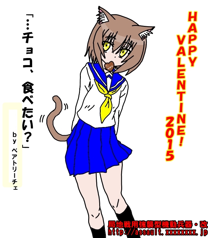 ティ・アーモ 創作系 2015年02月14日 ベアトリーチェ「ハッピー・バレンタイン♪」流遠亜沙「本日はバレンタインデーという事で、トップ絵をバレンタイン仕様に変更しました」ベアトリーチェ「これがTwitterに投稿したイラストの全体図だね」流遠亜沙「うい。ちなみに、これはトップ絵ver.で、挿絵ver.と他サイトへ配ったバージョンの3つがあります。是非、全バージョンコンプリートしてみてください」ベアトリーチェ「挿絵に使ってる小説は、今回はちょっと長めだね。しかも、ちょっと切ない感じ」流遠亜沙「気付けば予想外にシリアスなノリになってもうてん。もちょっと軽いノリのつもりだったんだけど」ベアトリーチェ「なんか、恥ずかしい……」流遠亜沙「うはははは! もっと羞恥に染まった表情を見せたんさい」ベアトリーチェ「でも、嬉しいかな。こういう面も描いてもらえると……うん、嬉しいよ」流遠亜沙「あざといだけのキャラじゃないんだよっていうのが伝われば幸いだわね」ベアトリーチェ「えへへ、そうだね」流遠亜沙「そんな訳なので、小説の方もよろしければお読みください」ZS〈ゾイドチック・ストラテジー〉『ティ・アーモ -Ti amo-』はこちら PR