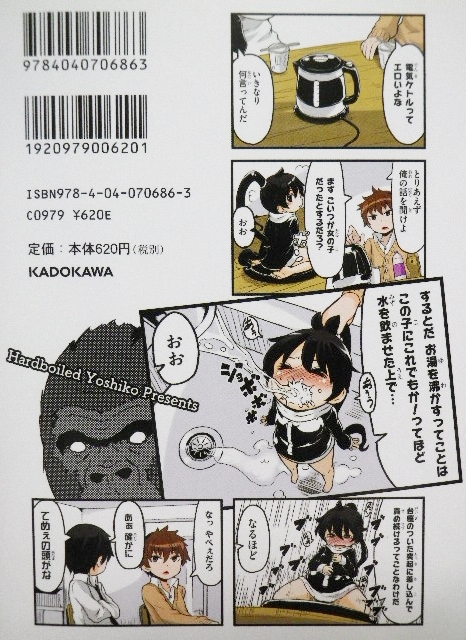 なっ! 興奮するだろ!? ラノベ・漫画・雑誌・ムック 2016年03月11日 『高校の日常』著者:ハードボイルドよし子妄想してごらん。もし電気ケトルが、牛乳パックが、ハンガーが、女の子だったら……妄想してごらん。それを高校生が作ったら、そして先生に見つかったら。妄想してごらん……。『月刊ドラゴンエイジ』にて連載中のギャグ漫画が単行本化。この手の学園を舞台にしたギャグ作品などすでに珍しくもないが、複数のペアが存在し、それらが交わる事はないという構成になっている。個人的に好きなのは照井と草加の女子ペア。基本ローテンションでジト目ポニテの照井が、金持ちでかまってちゃんの草加にバイオレンスなツッコミを行うという、いわゆるドツキ漫才担当。余談だが、草加の想像でメイド服になった照井が可愛い。ちなみに、この作品のキャラはすべて『平成ライダー』のサブライダーに変身する人物の苗字が付けられている。だから何だと言われれば、別に何でもないのだが、気付いた瞬間の衝撃はすごかった。なかなか面白いのでオススメ。ちなみにこの方、某・成人誌でも書かれていたり……。 PR