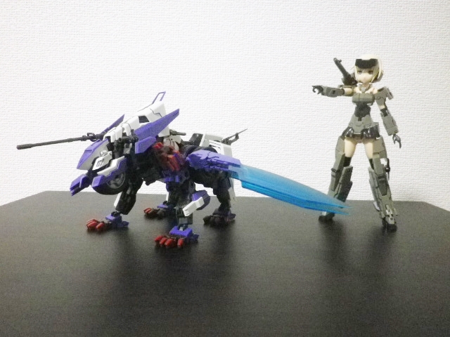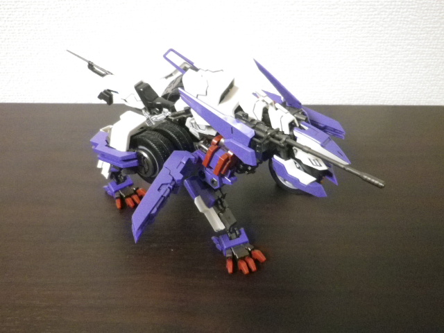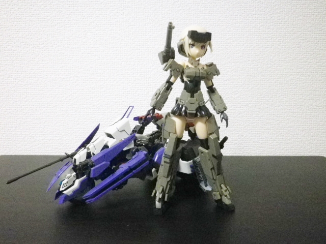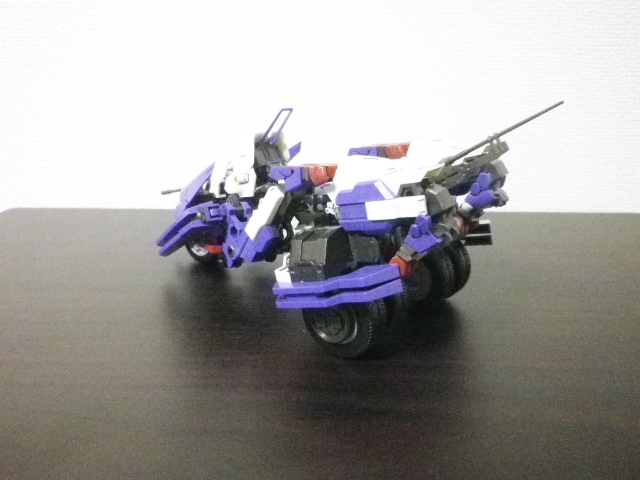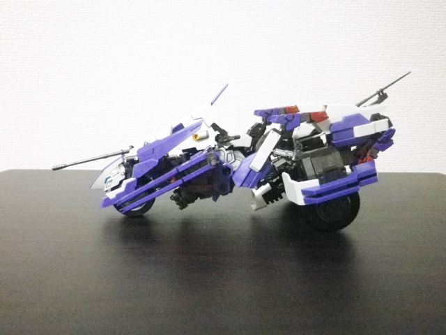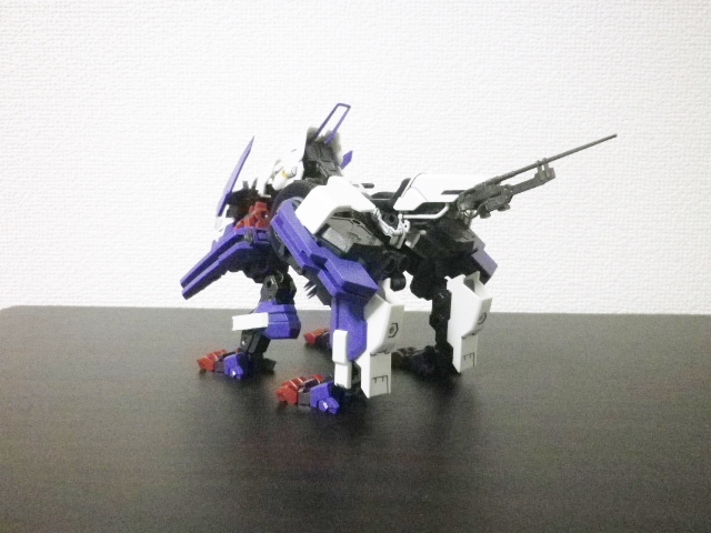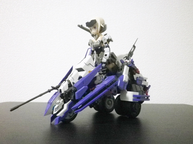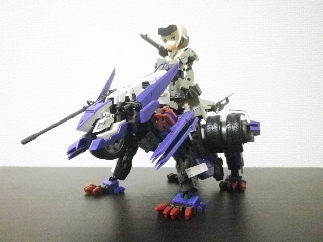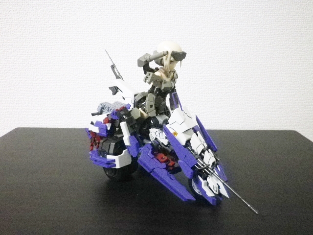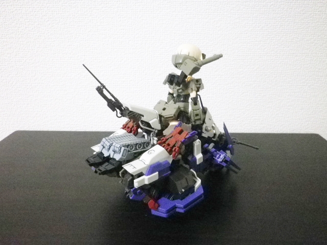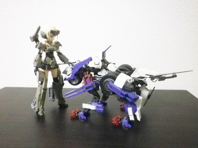 コンセプトはスクラップ&ビルド 模型・玩具・食玩・フィギュア 2017年09月27日 ヘキサギア『レイブレード・インパルス』『ゾイド』のHMMシリーズ、『フレームアームズ』と派生である『FAガール』などを送り出している模型メーカー・コトブキヤのオリジナルコンテンツ――『ヘキサギア』。その第1弾である『レイブレード・インパルス』を組んだ。 格闘形態“ゾアテックスモード” 高速走行形態“ビークルモード”カッコイイ。『ゾイド』的でありつつ、変形機構を有し、サイズも小さく、バイクや装甲車といった“乗り物”に近い印象を感じる。最初は特に魅力を感じなかったビークルモードも、実際に変形させてみると非常にカッコイイ。そして、このシリーズの真価は搭乗者であるフィギュアを同時に飾ってこそ発揮される……見よ!轟雷ちゃんをライド・オン! ……ガバナー(本来の登場フィギュア)ちゃうんかい。実は最初からこれがやりたかった。ガバナーのサイズがFAガールの約半分だと知り、無理かもと思っていたが、違和感なく乗せられて満足。轟雷ちゃん「よしよし、良い子ですね」轟雷ちゃん「頼みますよ、レイブレード・インパルス!」なにこれ、和むし燃える!続いてビークルモードにライド・オン! ビークルモードでも調整すれば搭乗可能。フットペダルは踏めてないけど気にするな!いやはや、バイクってほとんど興味なかったけど、これはカッコイイし美少女と絡めると、非常に魅力的に映ってしまう。本来の組み合わせではないが、やはり隣に搭乗者がいるとヘキサギアは世界観が広がる。単体でもカッコイイが、搭乗者と組み合わせてこそ真価を発揮する商品だと思う。購入を迷っている方は是非、搭乗させるフィギュアと一緒に飾る事を想像してみてほしい。個人的には超オススメ。『ヘキサギア』公式サイトはこちら PR