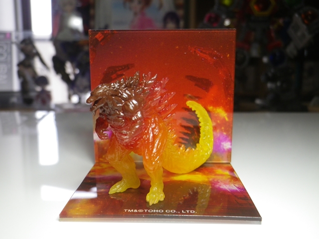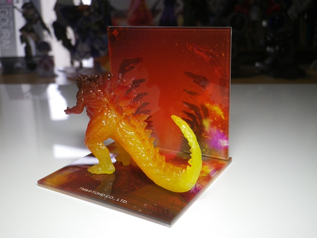 人類最後の希望〈メカゴジラ〉が、起動する。 映画・イベント 2018年05月19日 『GODZILLA 決戦機動増殖都市』流遠亜沙 ASSAULT form「劇場アニメ版ゴジラ――通称『アニゴジ』。第2章となる『GODZILLA 決戦機動増殖都市』、観てきたゼェェェット!」ツバキ ASSAULT form「今回も公開初日に行くなんて、実はかなりハマってませんか?」流遠亜沙 ASSAULT form「正直、そんな事はないのよ。第1章は面白かったけど、パッケージも買ってないしね。ただ、平日だから客も少ないだろうし、今回はメカゴジラが出るのよ? CMに登場するヴァルチャーも気になるし、じゃあ初日に行ってまえ!というだけの事で」ツバキ ASSAULT form「では――ご感想は?」流遠亜沙 ASSAULT form「『決戦機動増殖都市』って、そういう事かーい!」ツバキ ASSAULT form「まあ、そうなりますよね……」流遠亜沙 ASSAULT form「厳密にはこれもネタバレかもしれないけど、がっかりしちゃう人のためにあえて言っちゃおうと思います。まっさらな気持ちで観たい方は、ここから先は読まないでください。本当にネタバレになるような事ではないけど、念のため」ツバキ ASSAULT form「普段はネタバレなしのブログで、こんなに気を遣うと、本当に重要なネタバレなのではと思われませんか?」流遠亜沙 ASSAULT form「いやまあ、一応ね。じゃあ言いますよ。これが最終勧告ですよ?」流遠亜沙 ASSAULT form「今回のメカゴジラは――通常のロボット怪獣ではありません!」ツバキ ASSAULT form「何気にサブタイトルでネタバレしていますが、今回のメカゴジラは巨大な要塞都市と化しているんですよね」流遠亜沙 ASSAULT form「なので、ゴジラと取っ組み合いをしたり、光線合戦をしたりもしません! 3Dで動き回るメカゴジラ、観たかったなぁ……!」ツバキ ASSAULT form「実際のメカゴジラのビジュアルが、一切公開されなかった理由がこれですね」流遠亜沙 ASSAULT form「誤解のないように言っておくと、個人的には面白かった。メチャクチャ燃えた。前作『怪獣惑星』よりも好き」ツバキ ASSAULT form「そうですね。メカゴジラを巨大要塞都市にする発想は新鮮でしたし、前作にも登場したパワードスーツを発展させたヴァルチャーとの連携による戦闘は、戦艦と艦載機のような関係性で熱い展開でした」流遠亜沙 ASSAULT form「ここに来て地球人と異星人・ビルサルドの価値観の違いで、主人公・ハルオが苦渋の決断を迫られるとこも、虚淵作品らしい容赦なさが前面に出てて緊張感がすごかった」ツバキ ASSAULT form「地球人の末裔とされるフツアが、とある人気怪獣とリンクする設定なのも気になります」流遠亜沙 ASSAULT form「まあ、今回のメカゴジラと同じで、そのまんまは出ないだろうけどね。なんで、すでに公開されてる第3章に出るであろう“あいつ”も、予想を裏切る形になるんじゃないかしら」ツバキ ASSAULT form「期待は裏切ってほしくありませんけど」流遠亜沙 ASSAULT form「今回のメカゴジラも、がっかりしたっていう意見はネット上にあるからなぁ……。そういう人からしたら、予想じゃなくて期待を裏切られたって感じるのは仕方ないわな。あたしだって、面白かったから結果オーライだけど、やっぱり怪獣としてのメカゴジラが戦うのを期待してたから」ツバキ ASSAULT form「あくまでアニメとして面白いものを追及した結果ですから、往年の『ゴジラ』ファンや、怪獣ファンから否定的な意見が出るのは、仕方ないのかもしれません」流遠亜沙 ASSAULT form「怪獣同士の取っ組み合いが観たければ、過去の作品を観れば良い訳だしね。あたし個人としては面白かったし、アニメ作品として正しい内容だったと思う。不満があるなら観ないか、実写でやってくれって東宝に嘆願書を送るしかない」ツバキ ASSAULT form「それだと成立しなくなったからこそ、長い休止期間があって、『シン・ゴジラ』がああいう従来の怪獣映画っぽくない内容になったんですけどね」流遠亜沙 ASSAULT form「怪獣同士が戦うのも観たいけど、それじゃ商売にならない時代になっちゃったんだもんなぁ……嘆いても仕方ないけど。ただ、それはそれとして――あくまで個人的には『アニゴジ』肯定派です。今回の第2章も面白かった。第3章も絶対に行きます」ツバキ ASSAULT form「第3章へのネタバレを回避したい方は、早めに劇場へ行かれる事を推奨します。その際、映画館のチラシ置き場や、前売券売り場も見ないようにしてください。大変、危険です」『アクリルジオラマ ポスターイメージ』流遠亜沙 ASSAULT form「もうちょっとだけ。グッズは買わないつもりだったけど、興味を引かれちゃったので、これだけ買いました」ツバキ ASSAULT form「フィギュアと台座ですか?」流遠亜沙 ASSAULT form「そう。アクリル製の台座と背景があって、フィギュアを載せて完成。手のひらサイズで、すごく味がある」 ツバキ ASSAULT form「面白いですね」流遠亜沙 ASSAULT form「劇中のクライマックスを再現した、まさにジオラマ。かなり気に入ってます」『アニゴジ』公式サイトは