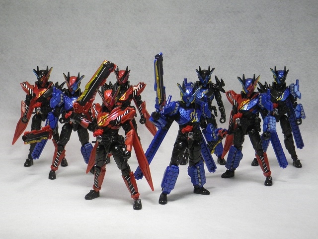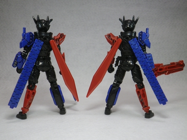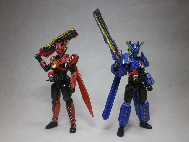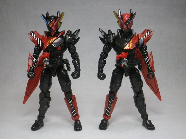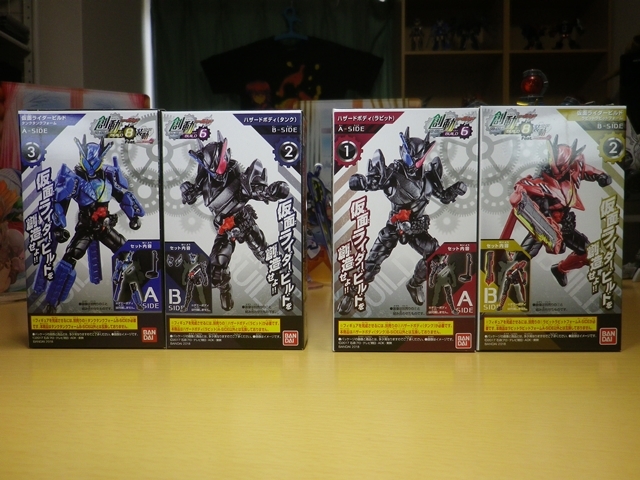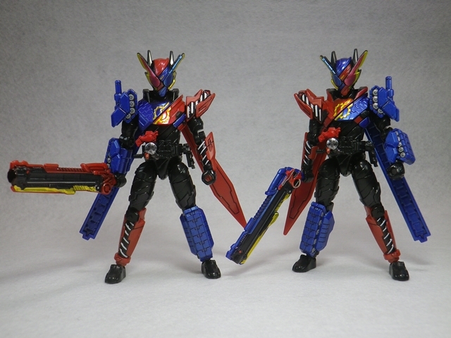 創動 仮面ライダービルド BUILD8 Feat.装動 仮面ライダーエグゼイド 模型・玩具・食玩・フィギュア 2018年05月29日 『創動 仮面ライダービルド BUILD8 Feat.装動 仮面ライダーエグゼイド』流遠亜沙 ASSAULT form「本日はお待ちかねのラビラビとタンタンが収録の、『創動 仮面ライダービルド BUILD8』だ!」ツバキ ASSAULT form「ちなみに、『エグゼイド』系は買っていません。ご了承ください」ヤミヒメ「ふむ。箱が少し厚いな」ツバキ ASSAULT form「ハザードフォームの上からパーツを装着する設定を踏まえているため、ボリュームがありますからね」流遠亜沙 ASSAULT form「さくさく行きます。本日は画像が多めなので」 仮面ライダービルド ラビットラビットフォーム 仮面ライダービルド タンクタンクフォームヤミヒメ「うむ。良い出来だな」ツバキ ASSAULT form「そうですね」流遠亜沙 ASSAULT form「終わりじゃない! まだ終わらせたりしない……!」ツバキ ASSAULT form「……なのは?」ヤミヒメ「ハザードボディ?」流遠亜沙 ASSAULT form「箱にはラビラビとタンタンは他のハーフボディと互換性はないって書いてるけど、ハザードボディとは互換性があるのだ!」 ツバキ ASSAULT form「食玩の公式ブログにあった組み合わせですね」流遠亜沙 ASSAULT form「せやねん。あれ見てから、絶対にやりたかってん」ヤミヒメ(なぜ、エセ関西弁になるのだ……)ツバキ ASSAULT form「左右非対称かつ黒が多めで、ハザードフォームの危険性が残っている感じが良いですね」流遠亜沙 ASSAULT form「難点は、ラビットタンクハザードフォームの頭部の一部が塗装だから、ラビットハザードフォーム(仮称)の片方に青が入っちゃってる事くらい」ヤミヒメ「塗るか落とせばよいではないか」流遠亜沙 ASSAULT form「そうなんだけど、元に戻せなくなると思うと……」ツバキ ASSAULT form「まったく同じ色にするのは、ほぼ不可能ですからね」 流遠亜沙 ASSAULT form「ハザードボディと互換性があって、この組み合わせが出来ないはずがない――という訳でやってみました。これはなんて名前を付ければいいんだろう……ラビラビタンタンハザードフォーム?」ヤミヒメ「語呂が悪い事この上ないな」ツバキ ASSAULT form「公式にはありえないフォームですから」流遠亜沙 ASSAULT form「最後に全パターン集合です」ツバキ ASSAULT form「え!? 組み替えてたんじゃないんですか!?」流遠亜沙 ASSAULT form「このために複数買いしておいたのだ!」ヤミヒメ「うむ! 壮観だな!」『創動 仮面ライダービルド』公式ページはこちら PR