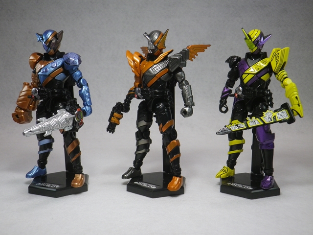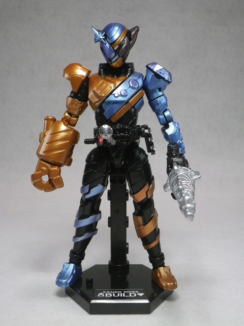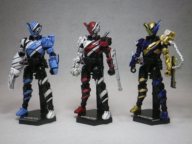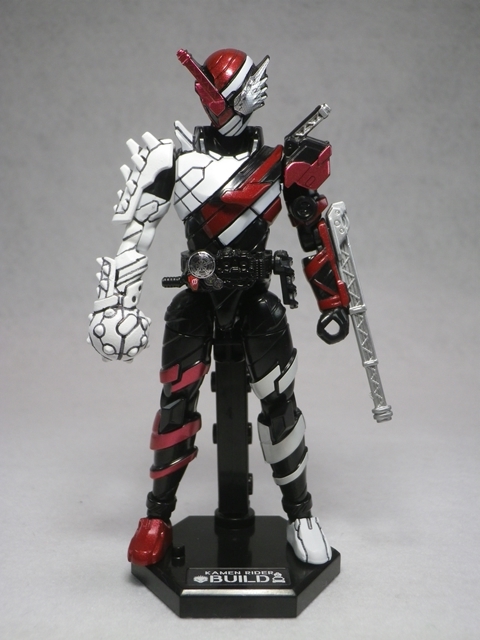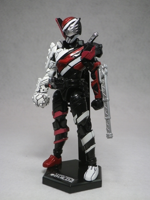 さあ、『創動』を始めようか 模型・玩具・食玩・フィギュア 2018年06月17日 仮面ライダービルド ゴリラモンドフォーム 仮面ライダービルド ホークガトリングフォーム 仮面ライダービルド ニンニンコミックフォーム流遠亜沙 ASSAULT form「唐突ですが、『創動』のゴリラモンド・ホークガトリング・ニンニンコミックです」ヤミヒメ「おお!!」ツバキ ASSAULT form「本当に唐突ですね」流遠亜沙 ASSAULT form「いやさあ、ネット配信でリアルタイム視聴しつつ、ようやく放送開始した地元の地上波で第1話から追っかけてると、「初期に出たフォーム、カッコええやん!」ってなる訳ですよ」ツバキ ASSAULT form「なるほど……」流遠亜沙 ASSAULT form「でもって――ベストマッチ!」 仮面ライダービルド パンダロケットフォーム 仮面ライダービルド ファイヤーヘッジホッグフォーム 仮面ライダービルド キードラゴンフォームヤミヒメ「おお……っ!!」ツバキ ASSAULT form「以前はトライアルフォーム(非ベストマッチ)だった組み合わせを、すべてベストマッチにしたんですか」流遠亜沙 ASSAULT form「大・満・足! やっぱベストマッチって考えられた組み合わせだなって、よーく判った」ツバキ ASSAULT form「これ、スミ入れしてますよね」流遠亜沙 ASSAULT form「メタリックカラーはいいけど、そうじゃない色、しかも白って、そのままだと物足りない感がすごくて。思いきってスミ入れしちゃいました。そしたら、思いのほか良くて」ツバキ ASSAULT form「確かに、しまりますね」流遠亜沙 ASSAULT form「そう! しまりが大変よろしい!」ツバキ ASSAULT form「…………」流遠亜沙 ASSAULT form「…………他意はありません。でも、すみません。ごめんなさい」ヤミヒメ「ん? 以前にスマホウルフフォームの名前が“有機物+無機物”の法則から外れていると言っていたが、キードラゴンもだな」ツバキ ASSAULT form「そういえば。ファイヤーヘッジホッグに至っては、元は消防車ですが、ファイヤー(火)になった事で物質ですらなくなりました」流遠亜沙 ASSAULT form「必ずしもボトル名が、そのままフォーム名になる訳じゃないし、フォーム名も“有機物+無機物”の法則は絶対じゃないみたいね。途中から観てると、こんなのも今更になって気付くわね」『創動 仮面ライダービルド』公式ページはこちら PR