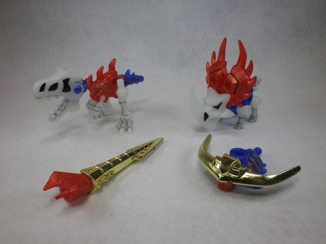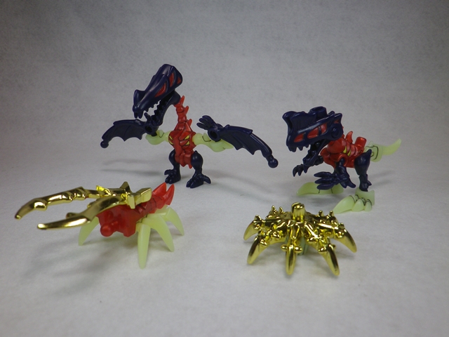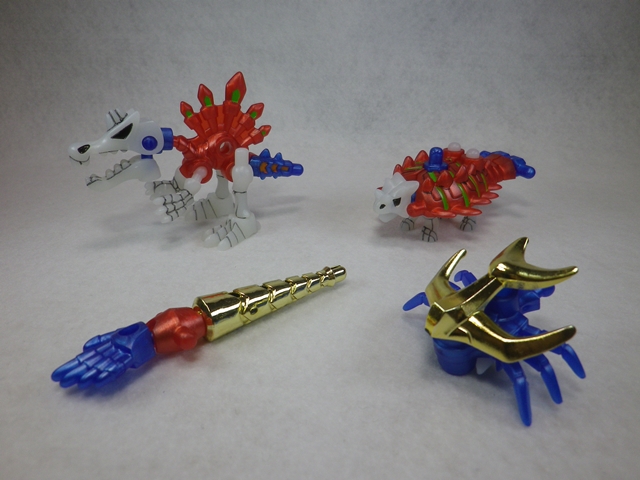 ほねほねザウルス 模型・玩具・食玩・フィギュア 2018年06月22日 流遠亜沙 ASSAULT form「ねえねえ、カナコお姉さん!」カナコ「……なにかな、だめにんげんくん」流遠亜沙 ASSAULT form「お姉さん、棒読みがすぎるよ。もっとテンション上げてほしいな! ウェーイ!」カナコ「さっさと本題に入るか、そのウザいテンションを続けるか――好きな方を選びなさい」流遠亜沙 ASSAULT form「本題に入ります!」『ほねほねザウルス(第30弾)』カナコ「以前に紹介した『ほねほねゲリオン』の本家ね」流遠亜沙 ASSAULT form「うい。それをきっかけに買ってみまして――去年の末に」カナコ「うだうだしてる間に半年経ってしまった訳ね」 流遠亜沙 ASSAULT form「前々から食玩コーナーで見かけてはいたけど、15周年とはね。箱の穴から番号が見えて、それで中身が判るっていうのも、なんか懐かしい……。小学生の頃、パーツを組み替えてロボットを自由に作れるのがあって、好きだった。あれもカバヤだったと思うけど、商品名とかまったく覚えてない」カナコ「1箱200円という事もあって、ランナーは2枚で組み立ては簡単ね」 流遠亜沙 ASSAULT form「奥の恐竜と、手前の古生物(昆虫や貝類)がセットで1箱に入っています」カナコ「全8種類ね。小さいけど、可愛らしくてなかなか良いわ」『ほねほねザウルス(第31弾)』流遠亜沙 ASSAULT form「続けて第31弾。対になる商品が出るのはお約束らしい」カナコ「第30弾は去年の7月、これは12月に発売されたものだけど、ずっとお菓子売り場にあるんでしょう?」流遠亜沙 ASSAULT form「さすがに第30弾はなくなってきたけど、第31弾は普通に売ってるわ。売れ残ってる感じとは違うし、地方によって流通時期にも差があるっぽくて。ちなみに、『ほねほねゲリオン改』はイオンでしか売ってなくて、初号機の黒だけ買おうかと思ってたけど、買えなかった」 カナコ「可愛い……」流遠亜沙 ASSAULT form「黒っていうのも良いわ。これも奥の恐竜と手前の古生物がセットで、全8種類。ちなみに、全部集めると合体します。好みじゃないのでやりませんが」カナコ「200円でこれだけ楽しめるなら、たいしたものね」流遠亜沙 ASSAULT form「オリジナル商品っていうのも、今となっては貴重よね。個人的には恐竜がモチーフなのもポイント」お気に入りティラノサウルス(左・第30弾)&ダークティラノサウルス(右・第31弾)お気に入り2ダークアンハングエラ(左)&ダークケツァルコアトルス(右)『ほねほねザウルス』スペシャルサイトはこちら PR