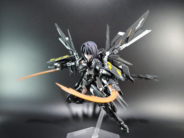 メガミデバイス『クラウ』 創作系 2018年10月30日 メガミデバイス『クラウ』/製作者:紙白ツバキ ASSAULT form「サイトを更新しました。『追加兵装』の紙白さんのページ、メガミデバイスの項目に『メガミデバイス クラウ』を追加しております」流遠亜沙 ASSAULT form「メガミデバイスとしては3作目となります。今回も紙白さんにお願いして、ご紹介させていただける運びとなりました」ツバキ ASSAULT form「……今回もすごいですね。語彙力を失ってしまいます」流遠亜沙 ASSAULT form「それな。「すごい」とか「カッコイイ」しか言えなくなるやつ。マジパネェ。マジヤバくね? てか、紙白さんマジリスペクトっしょ。うぇーい!」ツバキ ASSAULT form「語彙力の低下というか、チャラい人を遠回しに馬鹿にしてますよね?」流遠亜沙 ASSAULT form「そんなつもり全然ない的な? ある寄りのない的な? バイブスあげあげ的な?」ツバキ ASSAULT form「私も知りませんけど、恐らくちゃんと使えてない感じが余計にイラッとします」流遠亜沙 ASSAULT form「話を戻す的な? いや、戻すと――今回は設定はあまりないそうなんですが、少しでもあればと戴いております。画像も羽根を畳んだ状態がよく判るものを2枚戴いているので、展開時と見比べてみてください」ツバキ ASSAULT form「これらはホビコムにも掲載されていないので、ちょっとお得感がありますね」流遠亜沙 ASSAULT form「このサイトを見てる方であれば、『ゾイやみ』のクラウの最新フォーム、『ラインハイト・フォーム』はこういうのだと思ってください」ツバキ ASSAULT form「これはマイスターではイラストに出来ませんよね」流遠亜沙 ASSAULT form「無理だね! そもそもクラウのMBジャケットは、イラスト化なんて考えずにイメージ優先で設定してるから。それがこうして、まるであたしの脳内イメージがそのまま具現化したと言っても過言じゃない造形物になるのは、別の意味でも感慨深い」ツバキ ASSAULT form「たしかラインハイト・フォームは、ゾイドのラインハイト・ジェノクラウエの構想を改めて紙白さんに窺ってから設定したんですよね」流遠亜沙 ASSAULT form「うい。この『クラウ』もジェノクラウエの最終形態――つまりラインハイトを見越したデザインだから、あたしの脳内ラインハイト・フォームと一致するのもある意味、当然というか」ツバキ ASSAULT form「小説を書いている者のイメージと、原作者が自分のイメージを形にしたものが一致する。面白いですね」流遠亜沙 ASSAULT form「ちなみにラインハイト・フォームに尻尾を付けたのは、同じく紙白さん作のFAガール、バニラちゃんの尻尾が格好良かったからです。羽根があって飛べて尻尾が揺れる……もはやドラゴン」ツバキ ASSAULT form「先日掲載した『ゾイやみ』第32話にありましたね、そういう描写」流遠亜沙 ASSAULT form「さすがツバぴょん、さりげないステマ」ツバキ ASSAULT form「別にそんなつもりじゃ……いいですけど」流遠亜沙 ASSAULT form「紙白さんには製作者コメントも戴いているので、是非、ご覧ください」ツバキ ASSAULT form「作品の感想はご本人のSNSに直接か、こちらのウェブ拍手でも受け付けております。紙白さん、ページ作成にご協力いただき、ありがとうございました」『メガミデバイス クラウ』のページはこちら PR
